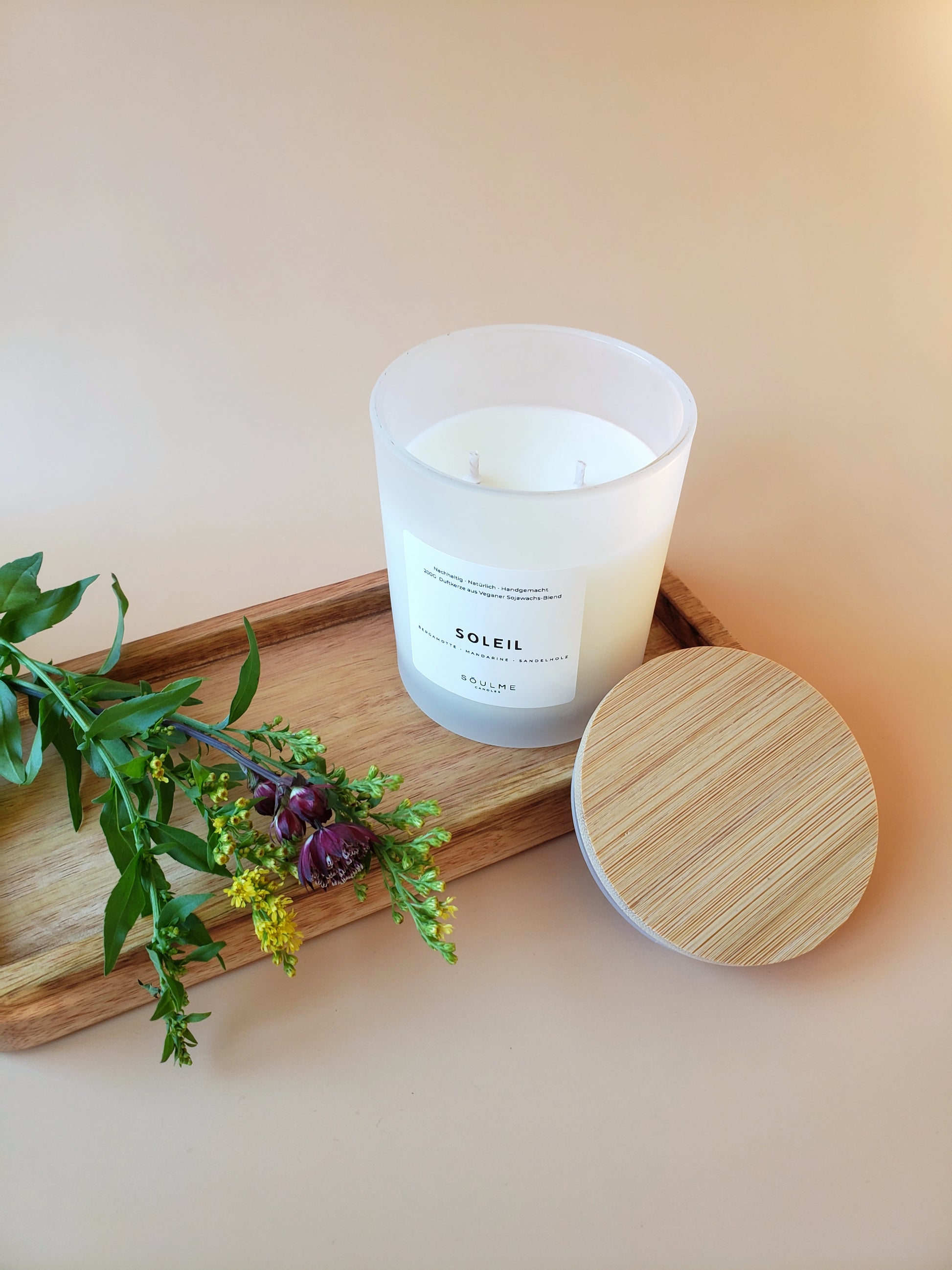 Unsere Kerzen bestehen aus einer sanften, natürlichen Kokos-/Sojawachsmischung, die für ein elegantes Aussehen, intensiven Duft und ein sauberes, ruhiges Brennverhalten sorgt – perfekt für handgemachte Premiumkerzen.